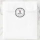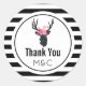 Eine Hochzeit Dankeschön Aufkleber mit einem schwarzen Hirschkopf aus geometrischen Linien und mit einer rosa Blumenkrone. Rustikales und trendiges Design.Background ist ein Muster mit schwarz-weißen Streifen. Personalisieren Sie Ihre Initialen.