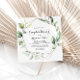 Diese geometrisch elegante goldgrüne Dusche lädt zu einem modernen Polterabend ein. Das Design besteht aus handbemalten botanisch-grünen Eukalyptus-Blätter, die einen goldenen geometrischen Rahmen schmücken.