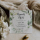Der geometrisch goldgrüne Brunch mit Brautdusche lädt zu einem modernen Polterabend ein. Das Design besteht aus handbemalten botanisch-grünen Eukalyptus-Blätter, die einen goldenen geometrischen Rahmen schmücken.