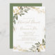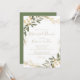 Dieses geometrische, goldgrüne Herbst-Probe-Dinner lädt zu einem modernen Event ein. Das Design zeichnet sich durch einen goldfarbenen geometrischen Rahmen mit eleganten grünen Blätter aus.