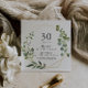 Diese geometrisch goldgrüne Party Einladung aus dem 30. Jahrhundert eignet sich perfekt für eine moderne Geburtstagsparty. Das Design besticht durch handbemalte grüne Blätter, die einen goldenen geometrischen Rahmen schmücken.