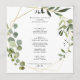 Diese geometrische, goldgrüne Kalligraphie-Dinner-Karte ist perfekt für eine einfache Hochzeit. Das Design besticht durch handbemalte grüne Blätter, die einen goldenen geometrischen Rahmen schmücken. Dieses Menü kann für Hochzeitsempfang, Probe Dinner, Brautparty oder jede Veranstaltung verwendet werden.