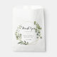Diese geometrischen goldenen tropischen grün danke Ihnen Gastgeschenk Hochzeit Taschen sind perfekt für eine einfache Hochzeit. Das Design besticht durch handbemalte grüne Blätter, die einen goldenen geometrischen Rahmen schmücken. Passen Sie die Leckerei-Taschen mit einer kurzen Dankesnachricht an, einschließlich Ihrer Namen und des Datums. Nutzen Sie diese Leckerei-Taschen, um einen Hochzeitsempfang, Brautparty, jede Veranstaltung oder Party zu ergänzen. Das einfache und elegante Design zeichnet sich durch klassische und extravagante Schriftzeichen in Schwarz und Weiß aus.