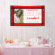 Feiern Sie Ihren Absolvent mit diesem geometrischen Foto "Red and Black One Geometric Grad". Personalisieren Sie mit Foto, Name, Schule und Jahrgang Ihres Absolventen. Dieses Banner der Schulfarbenklasse 2024 zeichnet sich durch femininen Schriftart und einen dekorativen rot-schwarzen Rahmen aus.