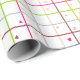 A clean geometric grid pattern accented with small hand-drawn heart shapes