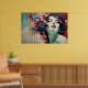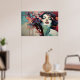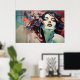 A digital masterpiece fusing human beauty with geometric abstraction. Vibrant coral and turquoise tones explode around a serene face, creating a hypnotic contrast between inner calm and outer energy. Modern art ideal for decorating with sophistication.