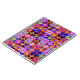 A vibrant geometric pattern composed of colorful squares and intersecting circles creates a dynamic and mesmerizing effect. The intertwining shapes are filled with gradients of green, blue, red, and yellow, generating a kaleidoscopic visual experience.