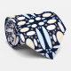 Elegant necktie featuring a refined geometric pattern of ovals and oval-inspired shapes. The design combines soft white, cream, and light brown tones set against a deep dark navy blue background, creating a balanced and sophisticated contrast.