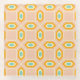 Geometric pattern featuring blue and orange diamond shapes on a peach background. The design creates a vibrant, symmetrical, and retro-inspired look.