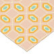 Geometric pattern featuring blue and orange diamond shapes on a peach background. The design creates a vibrant, symmetrical, and retro-inspired look.