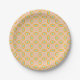 Geometric pattern featuring blue and orange diamond shapes on a peach background. The design creates a vibrant, symmetrical, and retro-inspired look.