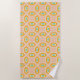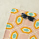 Geometric pattern featuring blue and orange diamond shapes on a peach background. The design creates a vibrant, symmetrical, and retro-inspired look.
