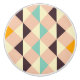 Geometric pattern with overlapping diamonds and triangles in orange, teal, cream, brown, and pink. The design is symmetrical, creating a vibrant, playful feel.