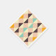 Geometric pattern with overlapping diamonds and triangles in orange, teal, cream, brown, and pink. The design is symmetrical, creating a vibrant, playful feel.