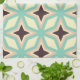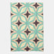 Geometric pattern with alternating dark star shapes surrounded by layered hexagonal outlines in teal, cream, and beige, creating a symmetrical, retro vibe.