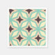 Geometric pattern with alternating dark star shapes surrounded by layered hexagonal outlines in teal, cream, and beige, creating a symmetrical, retro vibe.