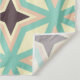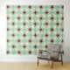 Geometric pattern with alternating dark star shapes surrounded by layered hexagonal outlines in teal, cream, and beige, creating a symmetrical, retro vibe.