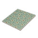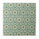 Geometric pattern with interlocking hexagons in green and teal, featuring brown hexagons in the center. The design is symmetrical and retro-inspired.