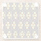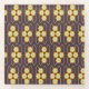 Repeating geometric pattern with orange and blue hexagons forming floral shapes on a dark background. The design conveys a retro, symmetrical feel.