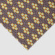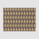 Repeating geometric pattern with orange and blue hexagons forming floral shapes on a dark background. The design conveys a retro, symmetrical feel.