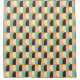 Geometric pattern with overlapping half-circles in teal, cream, brown, and peach on an orange background, creating a vibrant and retro feel.