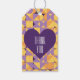 Einfach und Retro Vibes Gefallen Tags für die Herbstsaison Hochzeit. Mit geometrischen Mustern in beruhigenden Farbtönen lila, orange und gelb bringt dieses Design eine raffinierte und dennoch nostalgische Touch zu Ihrem besonderen Tag. Ideal für Paare, die das Wesen des Herbstes mit einem stilvollen und einzigartigen Ambiente erleben möchten. Dieses Template ist leicht zu personalisieren und ideal für jede Herbsthochzeit, es verleiht Ihnen Wärme und Eleganz.