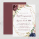 Diese geometrische, rustikale Goldkalligraphie-Einladung ist perfekt für ein modernes religiöses Ereignis. Das Design ist mit handgezeichnet Aquarell-lila, Marineblau, Rot, Bordeaux, Marineblau-Blume, grünen und goldenen Blätter, die einen eleganten geometrischen Rahmen schmücken.