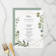 Dieses geometrisch-grüne Blätter mit spanischer Dinner-Karte eignet sich perfekt für eine moderne Hochzeit. Das Design besticht durch handbemalte grüne Blätter, die einen goldenen geometrischen Rahmen schmücken. Dieses Menü kann für Hochzeitsempfang, Probe Dinner, Brautparty oder jede Veranstaltung verwendet werden.