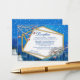 Eine blaue Winterfantasy-Szene mit geometrischem Goldrahmen lässt sich leicht mit Ihrem Text, Schriftart, Schriftart, Papierform und der Wahl von zwölf Papiersorten anpassen. Für eine Winterhochzeit steht Ihnen ein festes Thema zur Verfügung