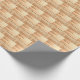 Geometric wooden panels are arranged against a textured sand backdrop, creating a visually interesting contrast between the smooth wood grain and the fine sand