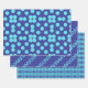 Introducing a beautiful gift wrap set that perfectly complements itself, featuring geometric shapes with turquoise blue for the designs and dark slate blue for the background. These colors blend seamlessly together, giving your gift wrap a fresh and vibrant look. The patterns are simple yet modern and creative, making them suitable for any occasion such as birthdays, graduations, or events with friends.