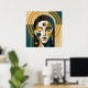 Geometric Zen Portrait in Teal and Ochre Poster