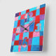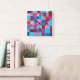 pink red blue tones geometrical design square wall clock