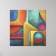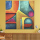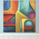 Geometrische Formen in lebendigen Farben verbinden sich in einem visuellen Dialog zwischen Kurven und Winkel. Die Komposition zeigt Balance und Kontrast, als ob jede Farbe und Linie Stücke eines künstlerischen Puzzles wären, das Vernunft und Emotion vereint.