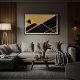 Ein abstraktes Kunstwerk, das geometrische Formen und erdige Töne kombiniert, um Ausgewogenheit und Eleganz zu vermitteln. Der Kontrast von Schwarz, Braun und Gold schafft ein modernes, elegantes und zeitloses Design. Ideal für zeitgenössische Innenräume, die Stil und Persönlichkeit suchen.