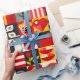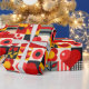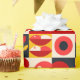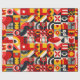 ein farbiges geometrisches Muster von Reds, Schwarzen, weißem und orangefarbenem, geometrischem Umschlagpapier
