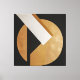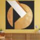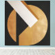 Eine abstrakte Komposition, die einen goldenen Kreis, ein dunkles Dreieck und einen weißen Streifen in elegantem Kontrast vereint. Das Kunstwerk vermittelt ein Gleichgewicht zwischen Kraft und Subtilität, erforscht den Dialog geometrischer Formen, Licht und Schatten und ruft Modernität und zeitlose Eleganz hervor.