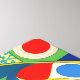 Eine lebendige abstrakte Leinwand mit mehrschichtigen geometrischen Formen in fett gedruckten Primärfarben, die ein ausgeglichenes und dynamisches, energiegeladenes und rhythmisches Muster schafft.
