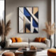 Linien und Formen verbinden sich in einem präzisen Stück neutraler Farben und Blautönen, wodurch ein Gleichgewicht zwischen Ordnung und Abstraktion entsteht. Das Kunstwerk vermittelt Raffinesse, Modernität und Kontemplation, als ob jeder Winkel einen neuen Weg für das Auge offenbart.