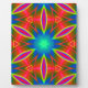 Ein ansprechendes geometrisches Muster/Design in Rot-, Blau-, Grün-, Gelb- und lila-Tönen mit einer Blume wie Motiv.