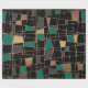 Geometrisch, abstrakt , schwarz, türkis , gold , braun, Streifen , Linien , kariert, schwarz und türkis