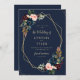 Ein Navy Blau und Bordeaux Floral Design mit einem goldenen geometrischen Rahmen mit Text in der Mitte. Sie können den Wortlaut, die Textgröße, die Farbe und den Schriftart dieser Vorlage ändern.