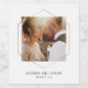 Dieses ultramoderne Label-Design besticht durch Ihr Lieblings-Hochzeitsfest mit einem geometrischen Rahmen-Overlay aus Imitaten und Ihren Namen sowie Ihr Hochzeitsdatum in römischen Ziffern.
