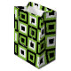 Grüne, weiße Quadrate Geometrisches Muster Medium Geschenktasche entworfen von Nisha Prabhu. Dieses Green White Squares Geometric Pattern Medium Geschenkbeutel ist eine stilvolle und bequeme Möglichkeit, Ihre Geschenke zu präsentieren. Die Tasche zeichnet sich durch ein modernes geometrisches Muster mit abwechselnden grünen, weißen und schwarzen Quadraten aus, wodurch ein visuell auffälliges Design entsteht. Die Farben sind lebendig und auffällig, was diese Geschenktüte hervorhebt und jedem Anlass eine Touch zeitgenössischer Eleganz verleiht. Ob Geburtstage, Feiertage oder besondere Anlässe, diese Geschenktasche macht Ihr Geschenk ganz besonders. Mit seinem einzigartigen und auffälligen Design fügt diese geometrische Pattern-Medium-Geschenktasche aus dem grünen Weißen Quadrat Ihrer Schenkung eine Touch der Modernität und Eleganz hinzu. Machen Sie Ihre Geschenke mit dieser stilvollen und bequemen Geschenktasche unvergesslich.
