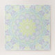 Diese faszinierende, trippige, psychedelisch-böhmische verzierte funky, leicht pastellgelb, grün, blau-bohmig und leicht polygeometrisch gefärbtes Glasmosaik symmetrisch mandala abstrakte Kunst wurde mit Mirror Labrador gemacht
