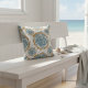 Dieses Kissen-Design hat eine Mischung aus Diamanten, Dreiecken und kleinen Details, die gut zusammenfließen. Wenn Sie genau hinschauen, werden Sie sogar die im Muster verborgenen Fischformen entdecken - eine lustige, subtile Verzückung der Natur. Die sanften Farben Blau und Beige wirken ruhig, wie das Wasser sich sanft bewegt. Es ist eine perfekte Mischung aus gepflegtem und natürlichem Leben, mit einem Hauch von Vintager und moderner Drehung. Es verleiht jedem Raum ein ozeanisch inspiriert Gefühl.