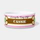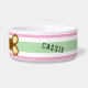 Name des Tieres in weißer Typografie gegen whimsical braunen Hundeknochen. Auf jeder Seite erscheint der Name des Tieres. Leben des Hundes Leben in schwarz Skript gegen pastellrosa, blassgrün und weiß geometrischen Streifen Hintergrund geschrieben. Original Design von TamiraZDesign.
