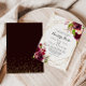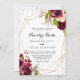 Diese geometrische rustikale burgundische Nuestra boda Hochzeitseinladung ist perfekt für eine rote Hochzeit. Die Einrichtung besteht aus rosa, rot, bordeauxrot und bordfarbenen Blume mit grünem Blattwerk, die einen geometrischen Rahmen mit vergoldetem Glitzer schmücken.