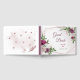 schöne pinkfarbene, bordeauxfarbene und weiße Blume mit einigen grünen Blätter botanisch geometrisch gestaltetes Gästebuch.