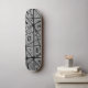 Ein Skateboard mit abstraktem geometrischem Vektordesign aus Linien und Polygonformen.